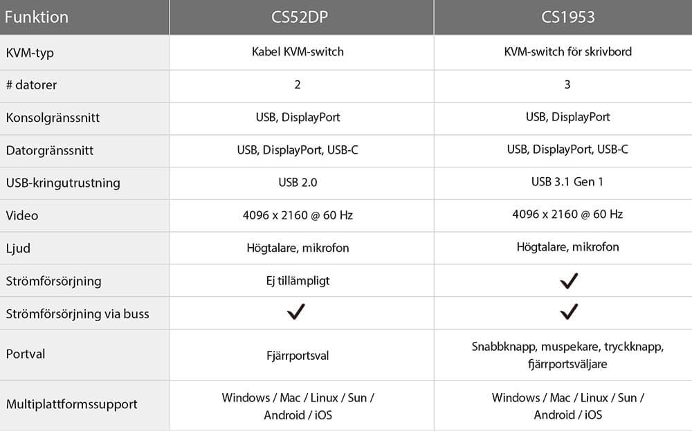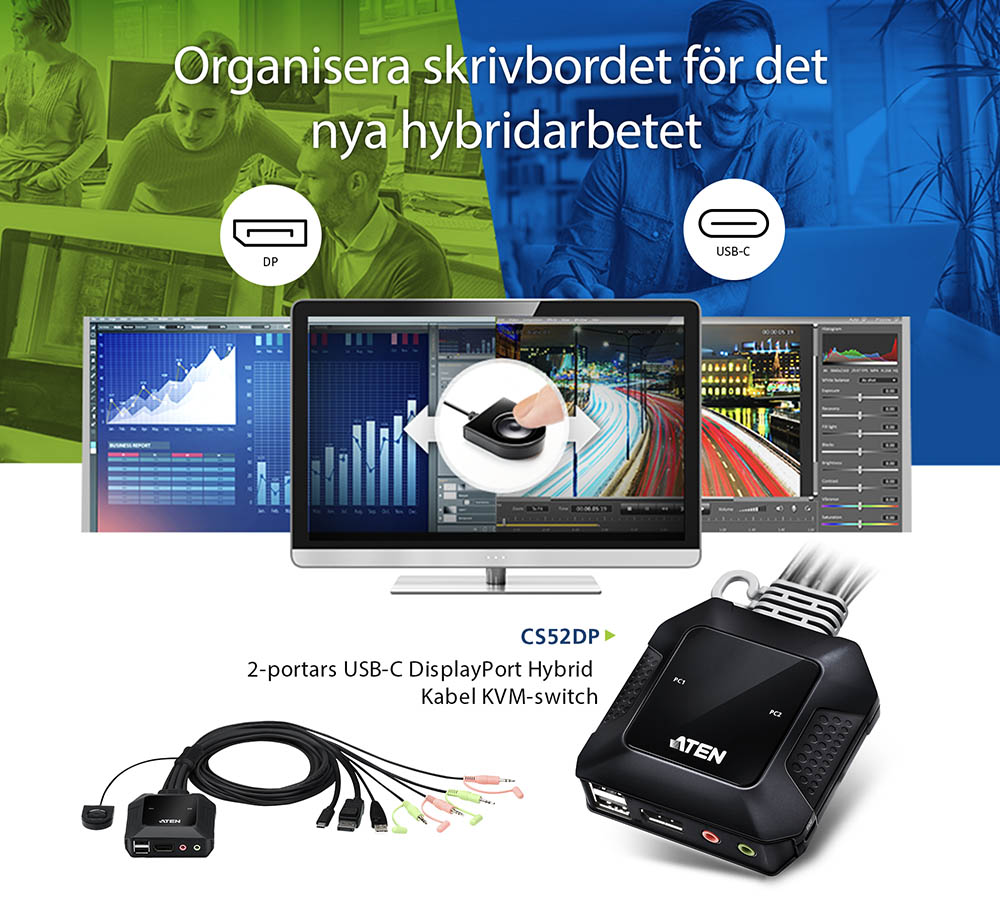 - 1x CS52DP 2-portars USB-C DisplayPort Hybrid Cable KVM-switch