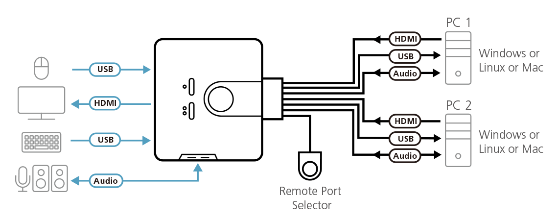 - 1x CS692 2-portars USB HDMI/Audio Cable KVM-switch med Remote Port Selector