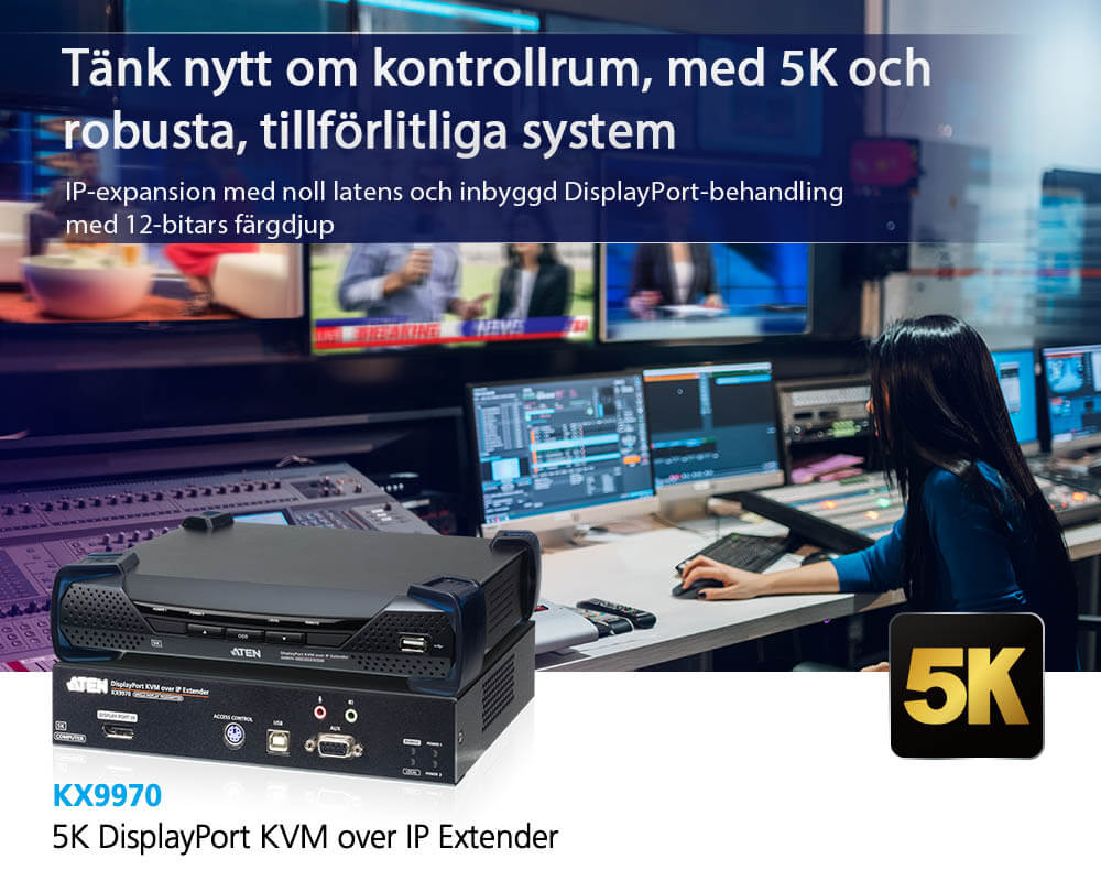 KX9970 ger utökade expansionsmöjligheter jämfört med tidigare modeller, med stöd för anslutning till optiska fibernätverk och hastigheter upp till 10 Gbps, fantastisk 5K audiovisuell prestanda, snabb delning av data med kringutrustning, och flera andra nya funktioner. Det här framtidssäkra KVM över IP Matrix-systemet med flexibla extenderanslutningar, funktioner för visuellt samarbete och systemkontroll, strömlinjeformar kontrollrummets arbetsflöde och möjliggör ökad produktivitet med KVM över IP-smidighet.