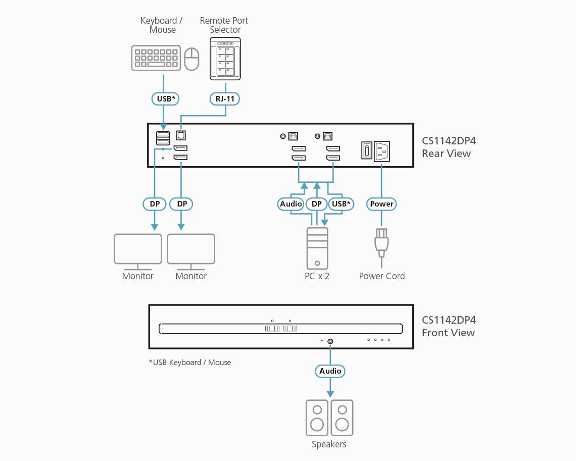 - 1x CS1142DP4 2-portars säker KVM-switch med USB DisplayPort och Dual Display