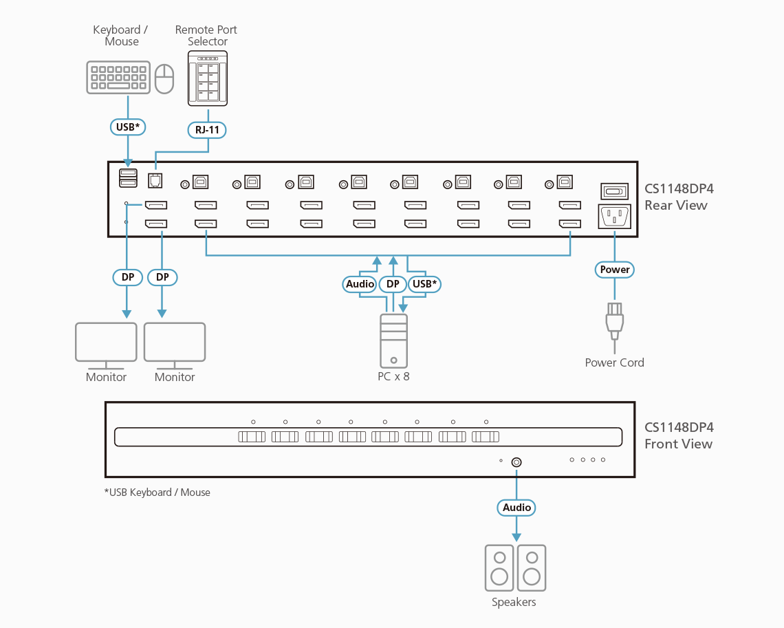 - 1x CS1148DP4 8-portars USB DisplayPort Dual Display säker KVM-switch