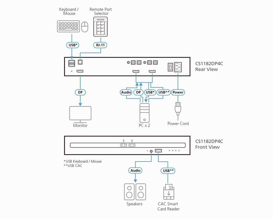 - 1x CS1182DP4C 2-portars säker KVM-switch med USB DisplayPort och CAC