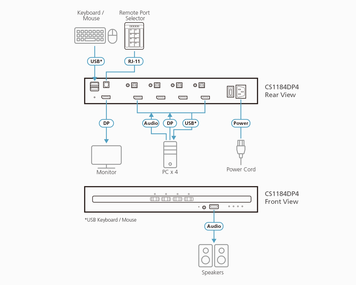 - 1x CS1184DP4 4-portars säker KVM-switch med USB DisplayPort