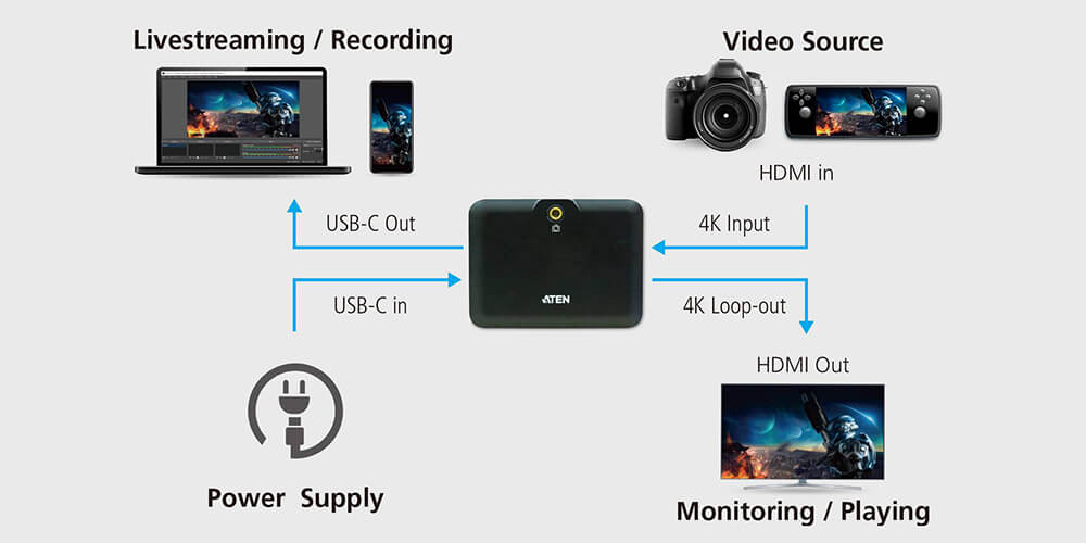 CAMLIVE™ Plus är en UVC-videokamera för mobilströmning, som levererar avkrypterade rådata till din bärbara USB-C/Thunderbolt 3-dator eller Android-telefon för efterredigering eller direktströmning. 60 W USB-C strömgenomströming kan ladda en bärbar dator eller Android-telefon, energiprofilen inkluderar 5 V/9 V/15 V/20 V. HDMI utport har latensfri, och problemfri förhandsgranskning av videor, som lämpar sig för strömning av spel med spelupplevelse i realtid. Med kameramonterbar adapter kan CAMLIVE™ Plus enkelt installeras på alla monteringssystem.