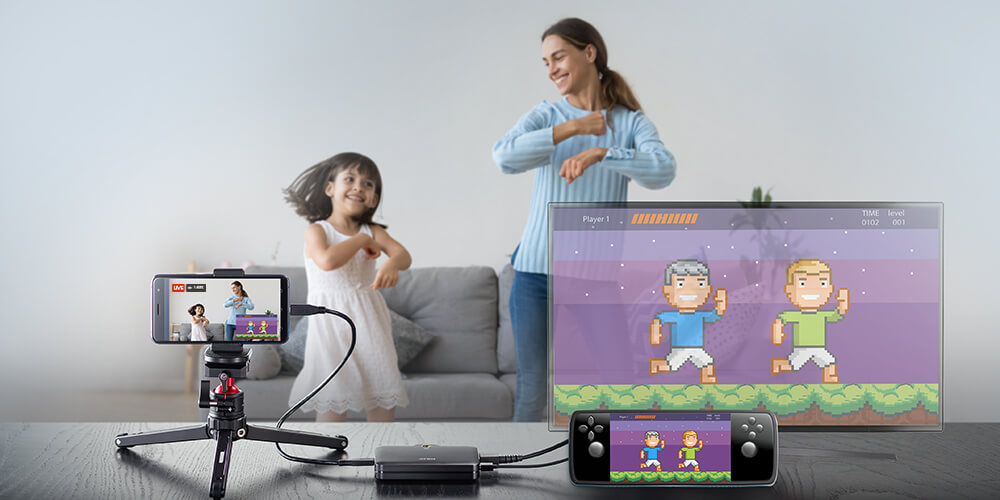 Förutom strömning av spel du spelar ensam i sovrummet kan du nu även liveströmma när du leker partylekar med vänner eller familj i vardagsrummet med CAMLIVE+. Använd bara 4K60P slinga ut med låg latens från din spelkonsol till din tv för realtidsspelande och använd din smartphone som kamera och liveströmningsenhet, utan komplex utrustning.