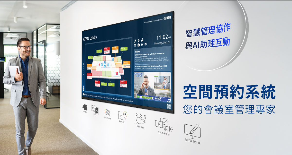 在現代工作環境中,空間管理的重要性與日俱增。ATEN RBS空間預約系統,透過AI與物聯網技術,打造智慧高效的辦公與協作環境。不論是企業辦公室、共享工作空間,或是大型會議中心,ATEN空間預約系統都能有效提升資源利用率,讓空間運作更智慧、更流暢。該方案核心特色包含:
