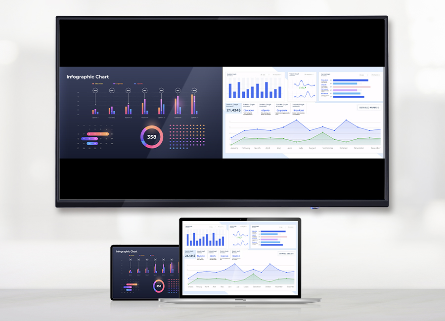 - 多視圖呈現 – 最多可同時呈現兩個無線分享畫面,支援全螢幕/並排版面呈現