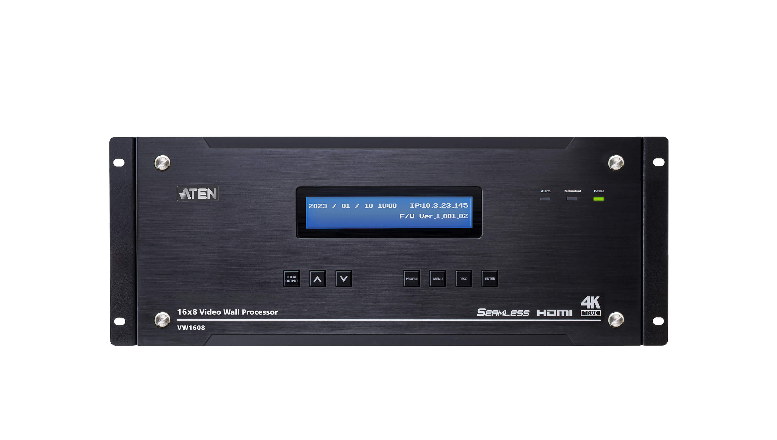 VW1608 為模組化 4K 電視牆影像處理器,精巧的4U 機箱設計可管理 16 組輸入來源與 8 台顯示器;卓越的影像、智慧監控、高度擴充性及穩定可靠的系統架構,非常適合戰情室、控制室、演講廳及數位看板等應用場域。