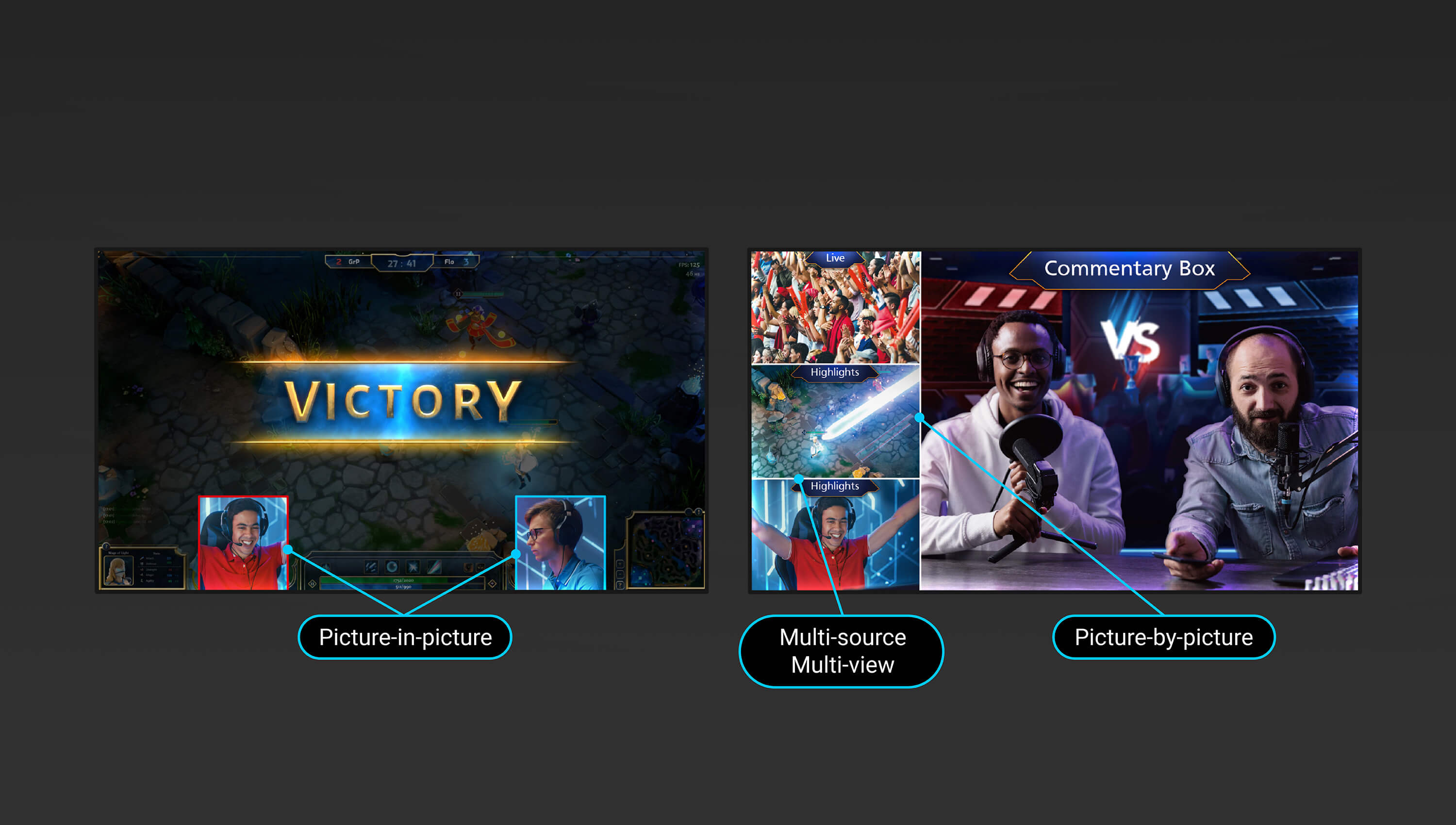 - 先進的電視牆引擎 – 支援裁切、重疊顯示、左右並列、子母畫面、邊框補償等畫面配置