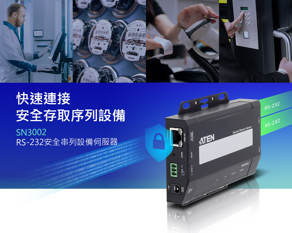 方便、安全可靠的解決方案,讓您更輕鬆將各種序列設備連接至IP型乙太網路。ATEN SN3002安全串列設備伺服器,具有簡單又快速的序列轉乙太網路連網功能,讓使用者從電腦,即可遠端存取RS-232序列設備。SN3002解決方案,非常適合商業和工控應用。