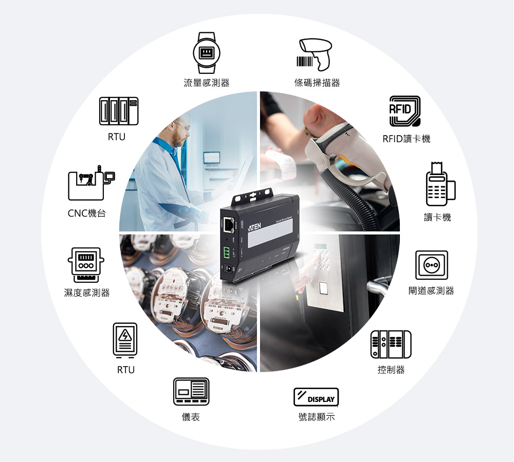 SN3002系列支援序列設備網路連線,適合應用在商業、工業製程自動化環境;包含 POS、存取控制、SCADA 系統、環境監控、感應器監控、裝置管理、遠端管理等。