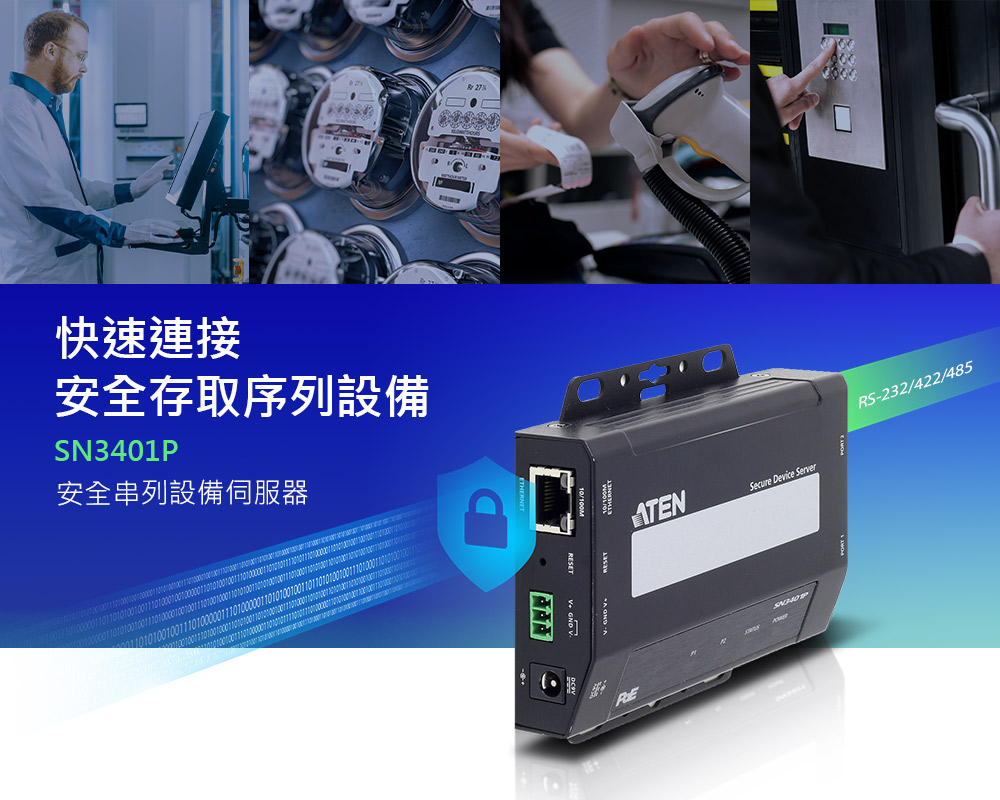 ATEN SN3401P安全串口設備連網伺服器,可將傳統RS-232/422/485序列設備安全地連接到乙太網路上的網路設備,讓電腦能從任何地方進行遠端存取,並可透過網路擴充主機的序列連接埠數量。SN3401P尤其適合工業控制應用。它能提供序列和網路訊號間的雙向轉換,進而透過網路收集近端及遠端序列設備的資料。例如:廣泛運用在工控環境的資料採集及監控系統 (SCADA),能收集SN3401P設備序列埠所接的可程式化邏輯控制器 (PLC)、量測器和感測器數據。