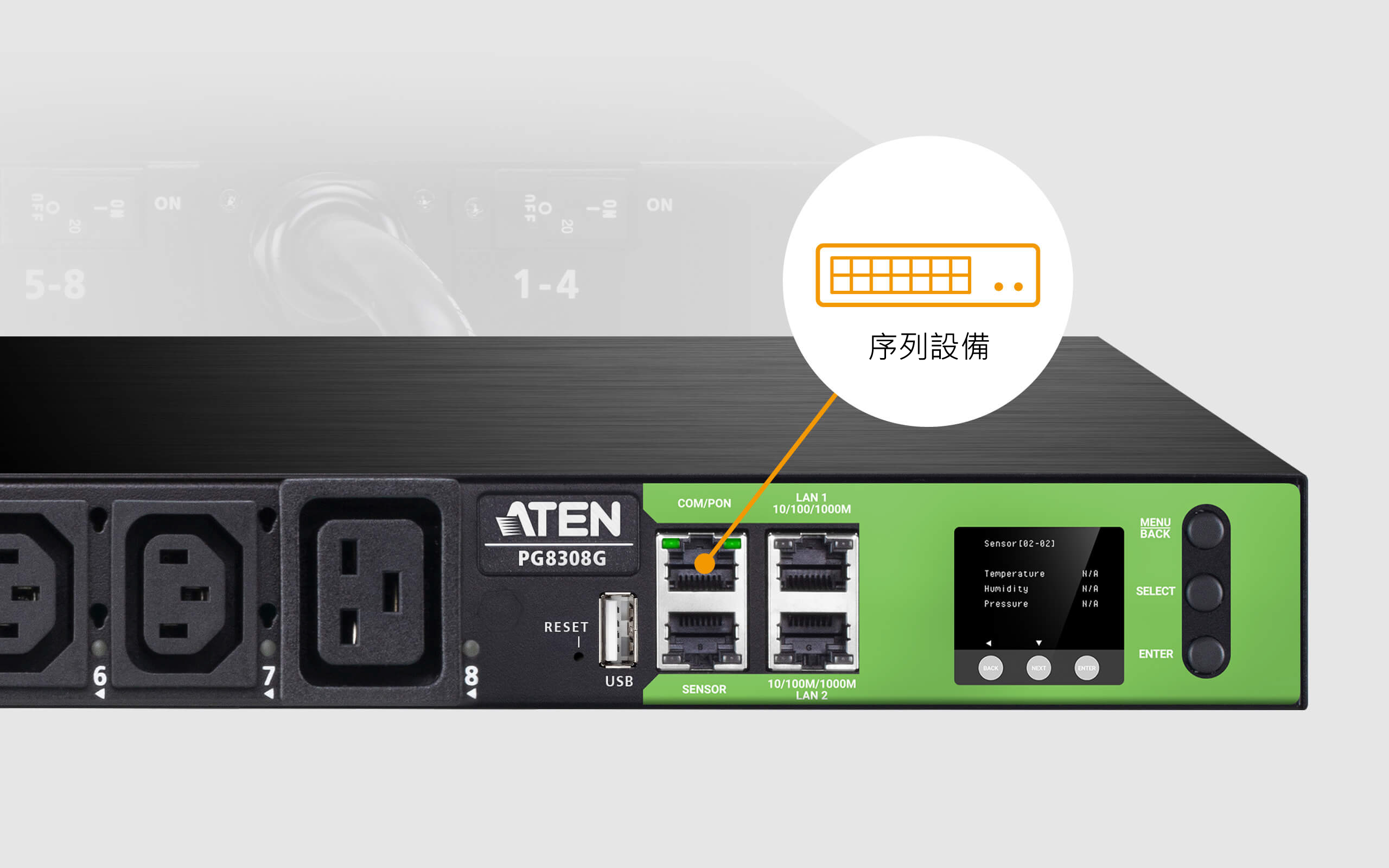 PG系列智慧型電源分配器配備RJ-45感測器連接埠,可連接EA1640感測器以監控資料中心的環境狀態,確保最佳的運作條件。此外,PG系列智慧電源分配器提供安全、集中且智慧的電源管理功能,允許使用者開啟、關閉或循環開關資料中心內的IT設備,如伺服器、儲存系統、KVM多電腦切換器、網路設備和序列資料裝置。