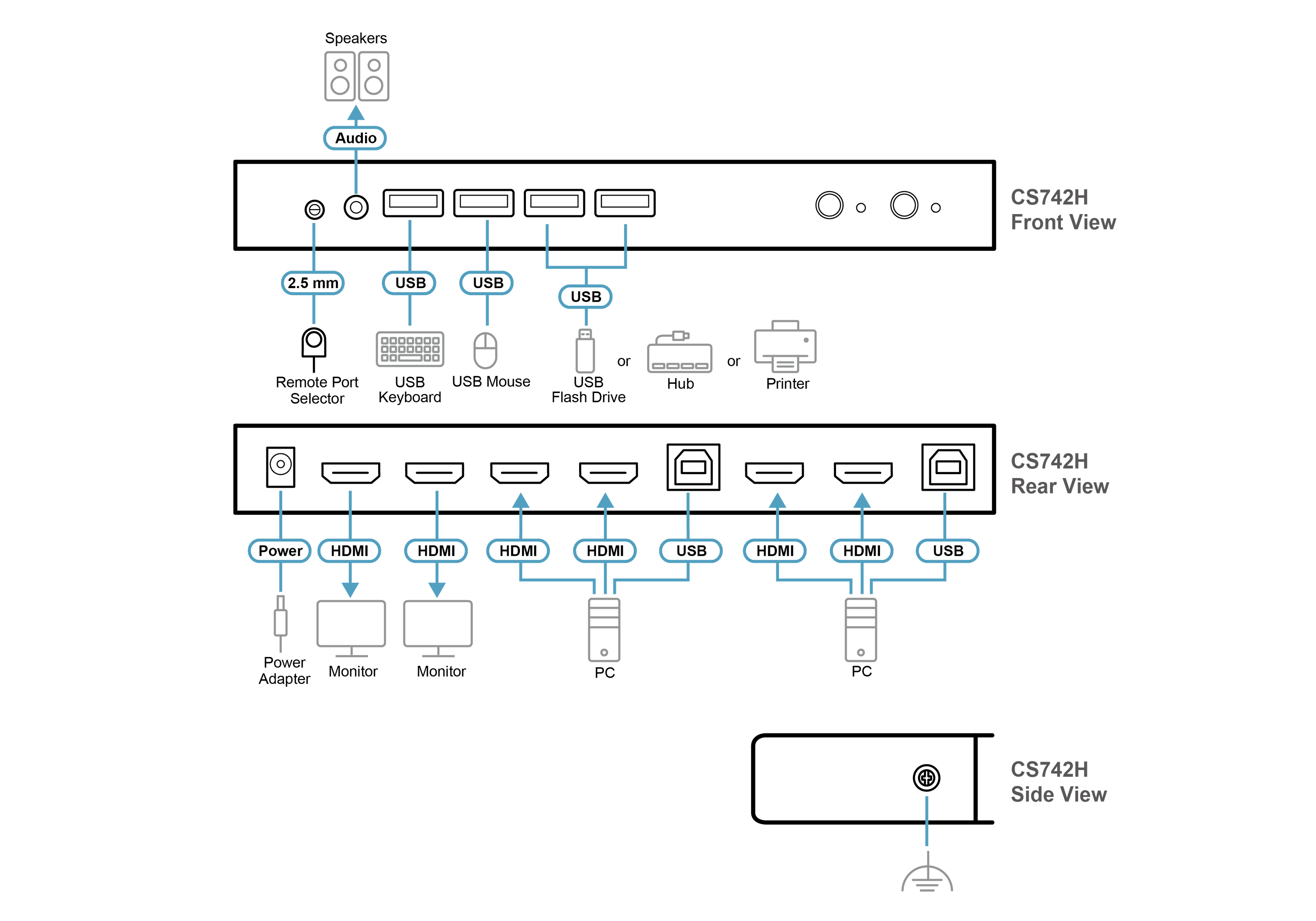 - 1 x CS742H 2埠USB 4K HDMI雙螢幕KVMP™ 多電腦切換器