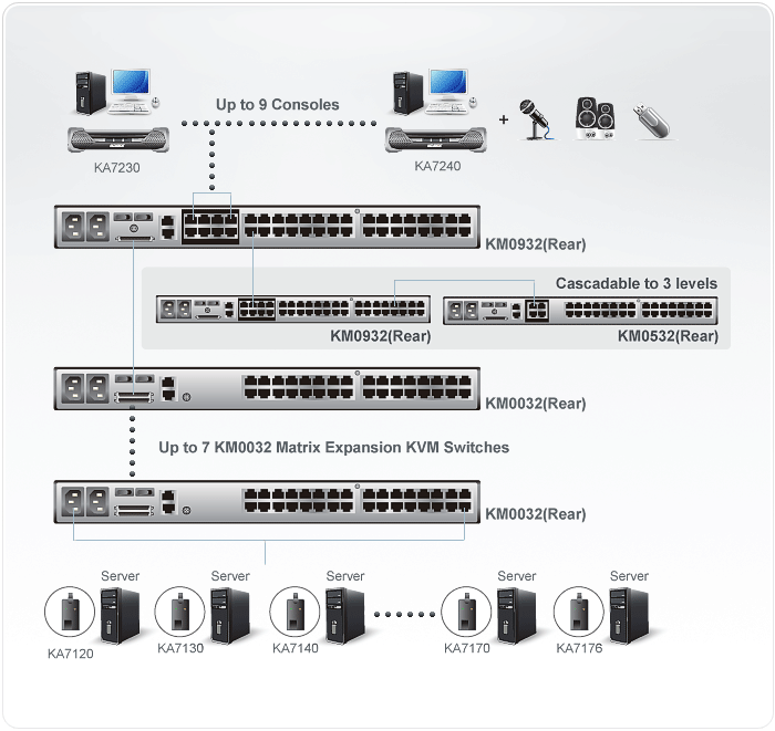 - 1x KM0032 Matrix矩陣式擴充型KVM多電腦切換器