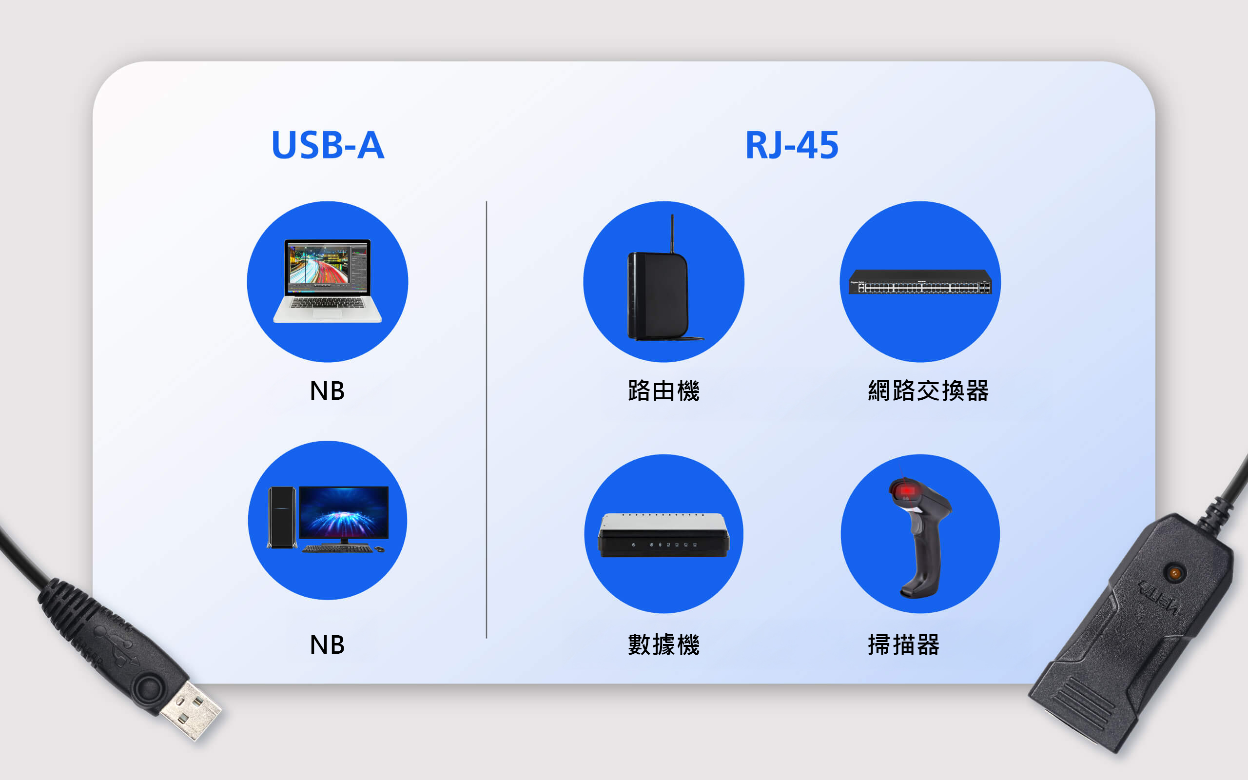 - 不需反轉RJ-45線材,可支援標準RJ-45線材連接至網路路由器、數據機或網路交換器