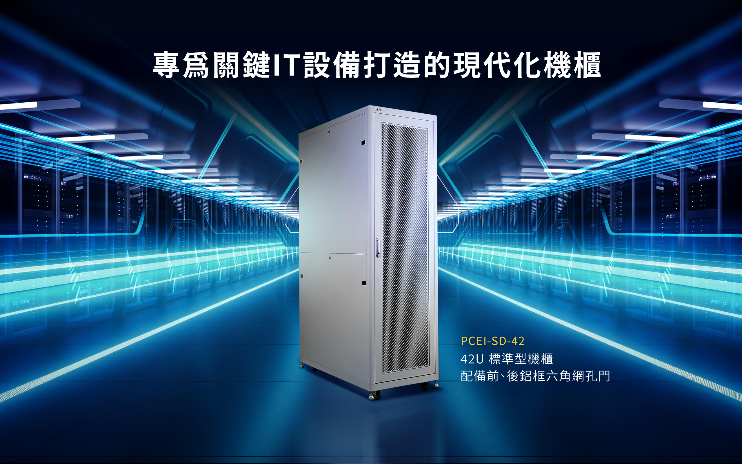 機櫃前後門皆採六角型通風孔設計,通風率高達 66%,有效提升機櫃氣流循環與散熱效率,完美符合現代機房對節能減碳的標準。
