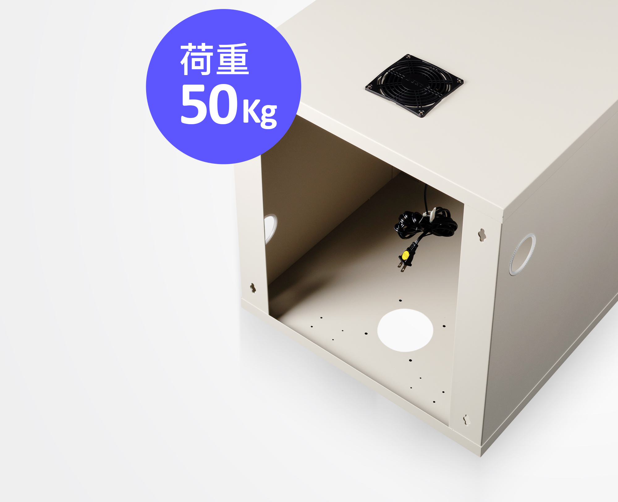 - 機櫃後側左、右均有懸掛孔,搭配標配的膨脹螺絲,可以輕鬆安裝