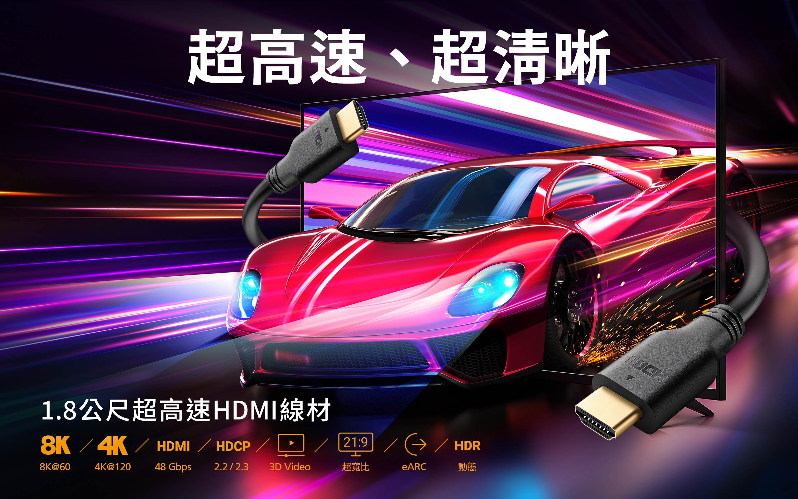 超高速HDMI線材支援eARC功能 (增強音訊回傳通道),可將聲音與影像的傳送達到最佳同步,