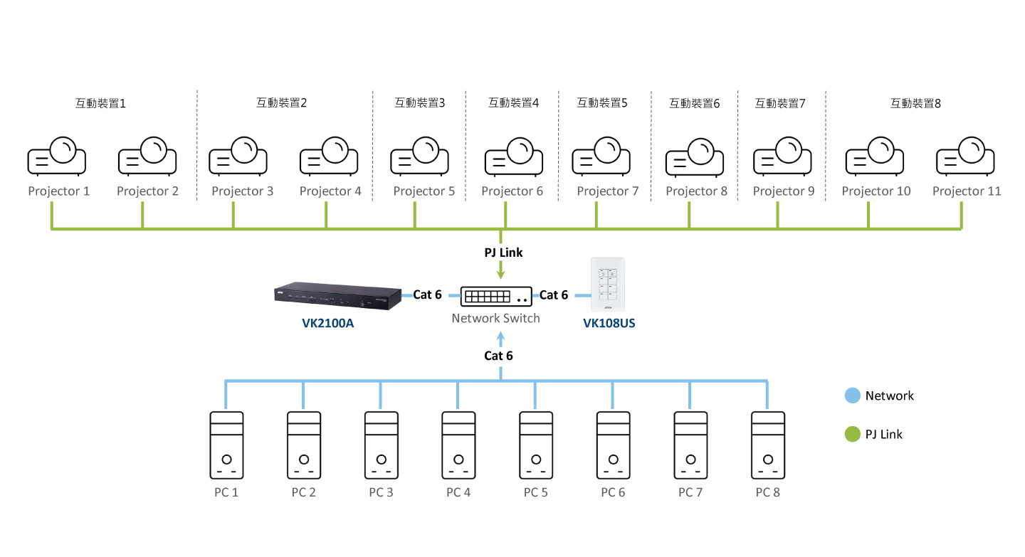該公司選用 ATEN 環控系統,透過網路控制集中管理設備,僅須透過環控面板一鍵開機的功能,即可開啟多個互動展示裝置。操作簡單並且省時!