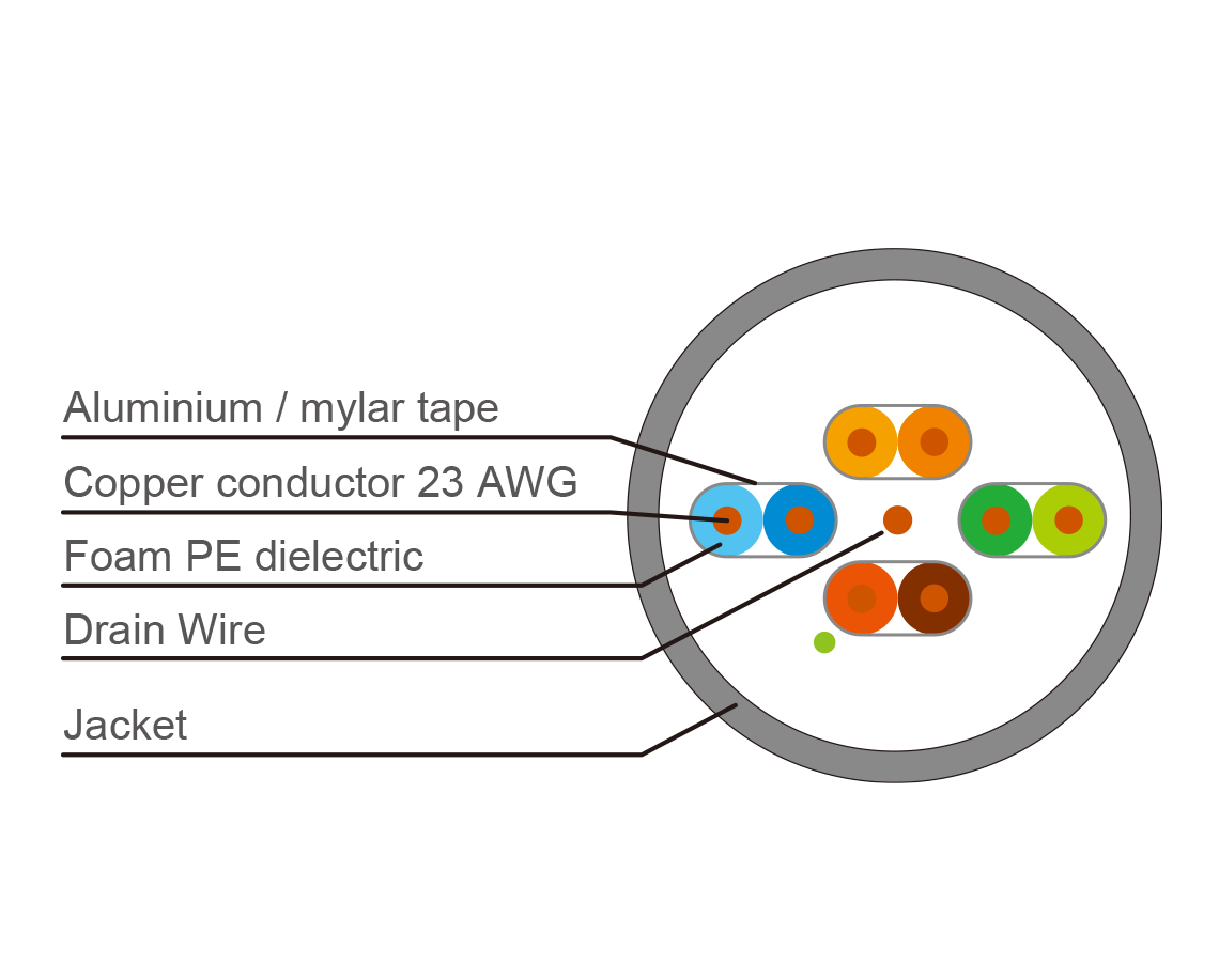 - Conductor material: 23 AWG solid bare copper