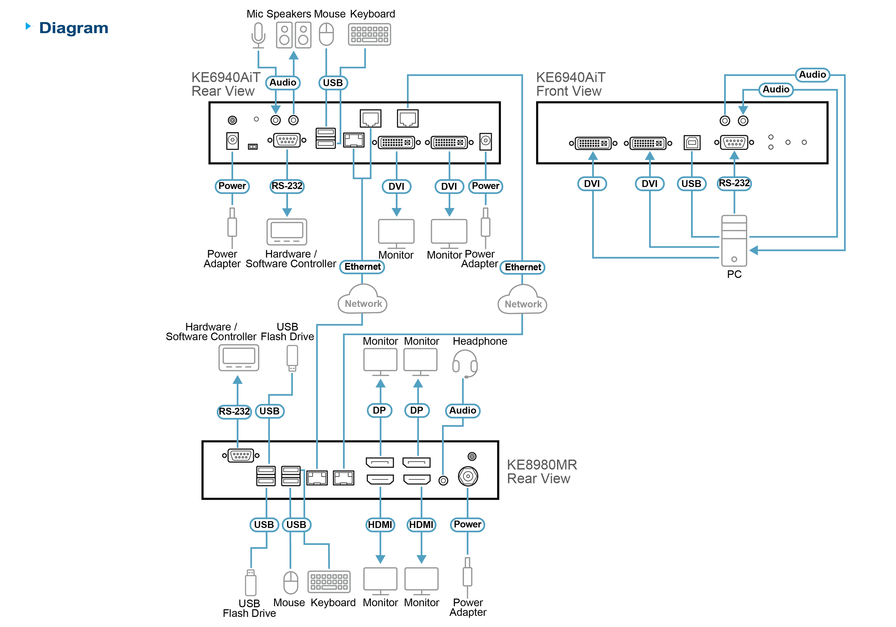 - 1x KE8980MR 4K Quad-Display KVM over IP Multi-View Receiver