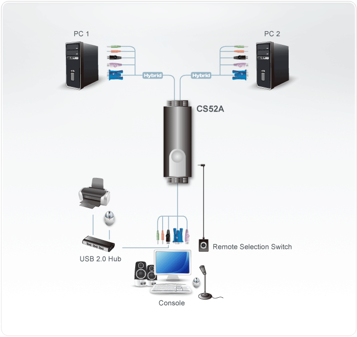 - PC selection via a Remote Port Selector and supports superior video quality up to 2048 x 1536; DDC2B