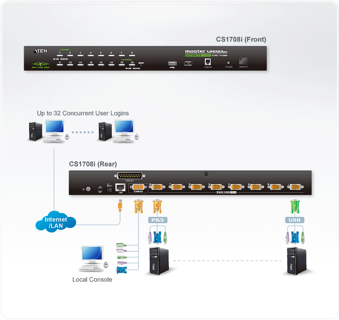 - Daisy chain up to 15 additional units - control up to 128 computers