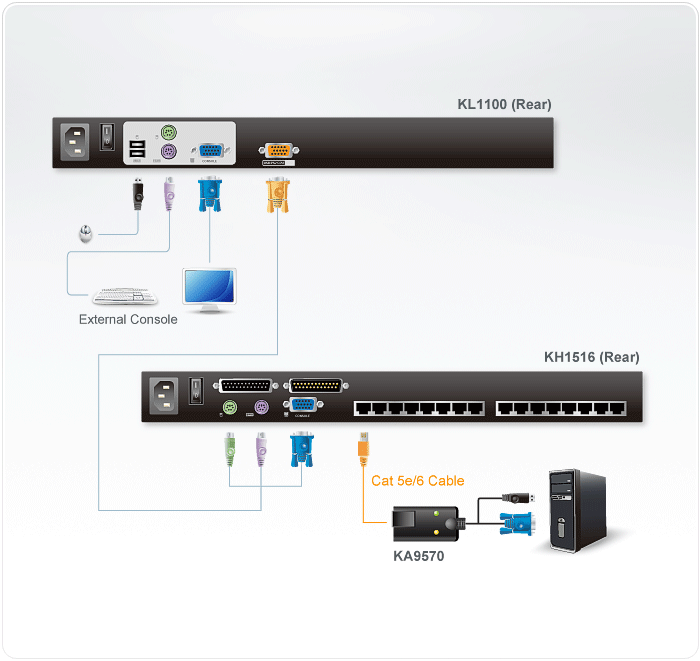 - For more information about KVMs which can connect to KL1100, see Compatible KVM Table