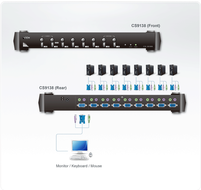 8 Port PS/2 KVM Switch w/ 8 PS/2 Cables