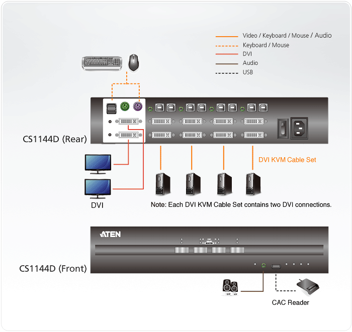 - 1x CS1144D 4-Port USB DVI Dual Display Secure KVM Switch