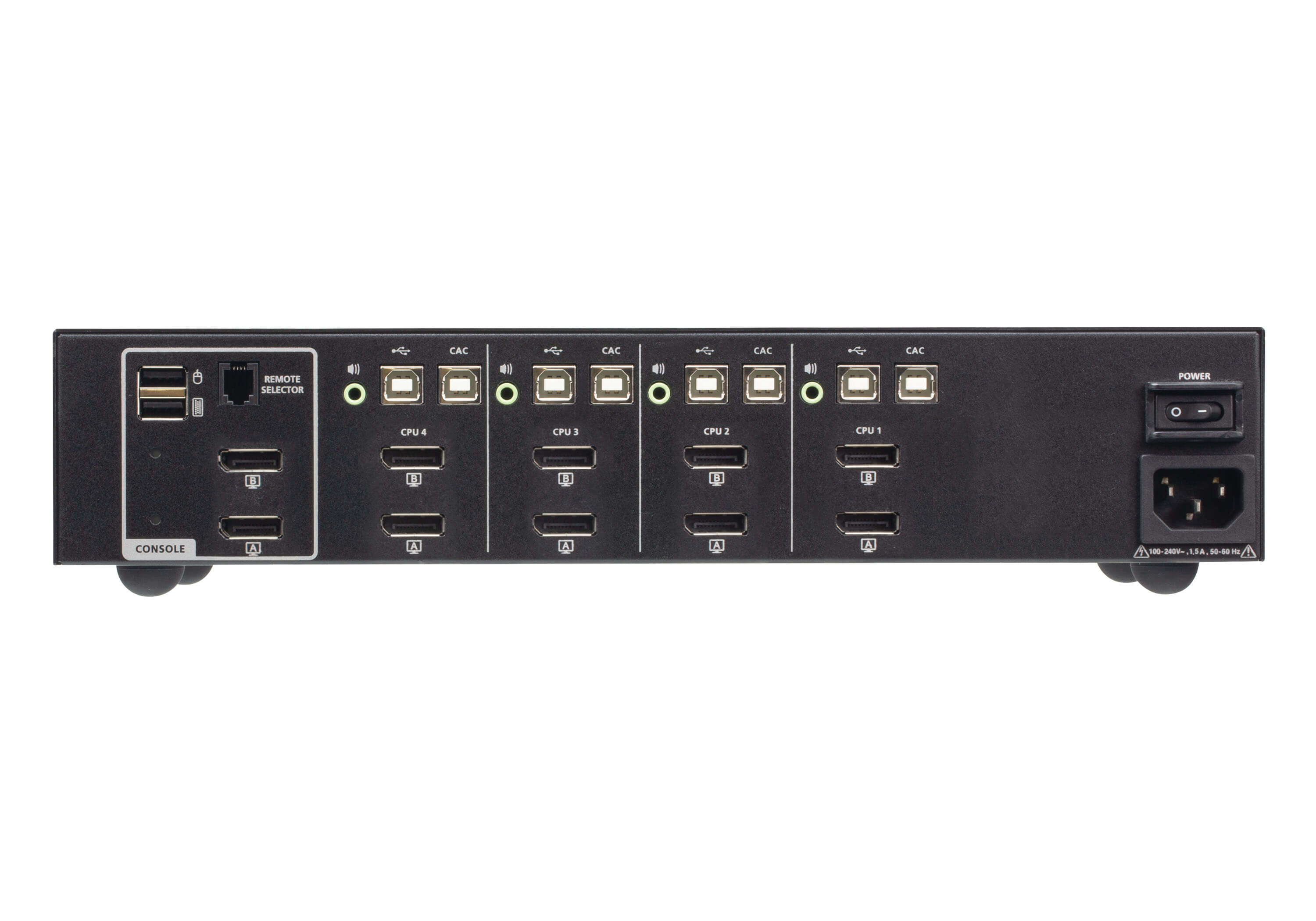 To enhance security, ATEN PSD PP v4.0 Secure KVM Switch CS1144DP4C only offers manual switching methods including front panel pushbuttons and Remote Port Selector (RPS) 1.With multi–layered security, ATEN PSD PP v4.0 Secure KVM Switch CS1144DP4C ensures high-level desktop security and data safekeeping for applications such as government and military agencies, healthcare providers, banking and finance institutions, and other organizations that often handle sensitive or confidential data on separate networks.