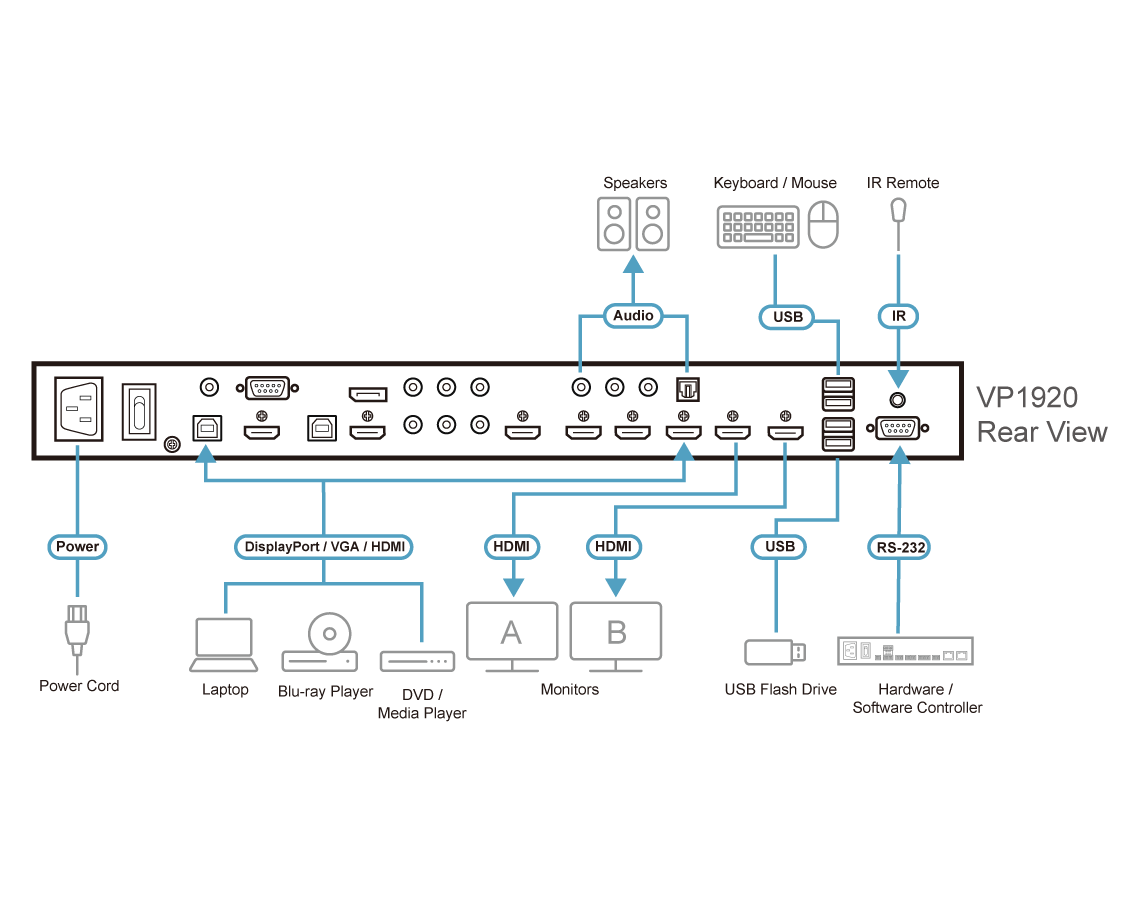 - 1x VP1920 9 x 2 4K Presentation Matrix Switch
