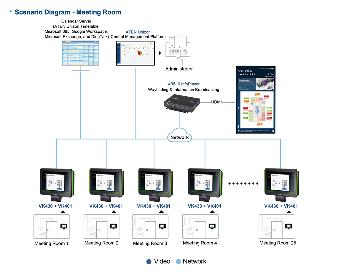 - Integrates with ATEN Unizon Timetable, Microsoft 365 Calendar, Google Workspace Calendar, Microsoft Exchange Server, and DingTalk