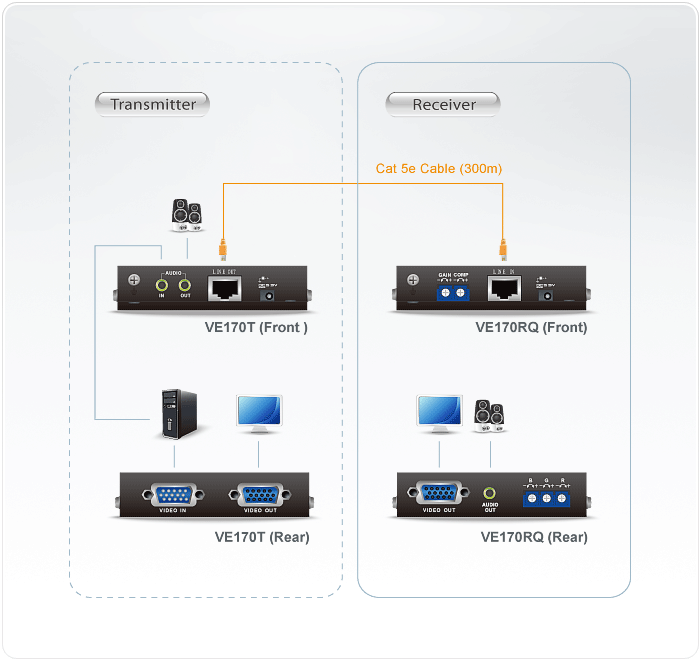 - 1x VE170R A/V Over Cat 5 Receiver