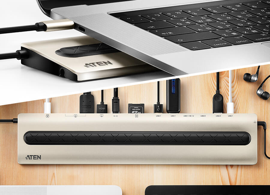 The ultra-sleek ATEN USB-C Multiport Dock is a one-step total upgrade for your laptop that provides all the extra expansion capabilities that you need. Simply use one cable to add up to 13 devices, with power delivery pass-through to boost your productivity with extra HDMI, VGA, USB 3.2 Gen 1, USB 2.0, SD/MicroSD, Ethernet and Audio connections.