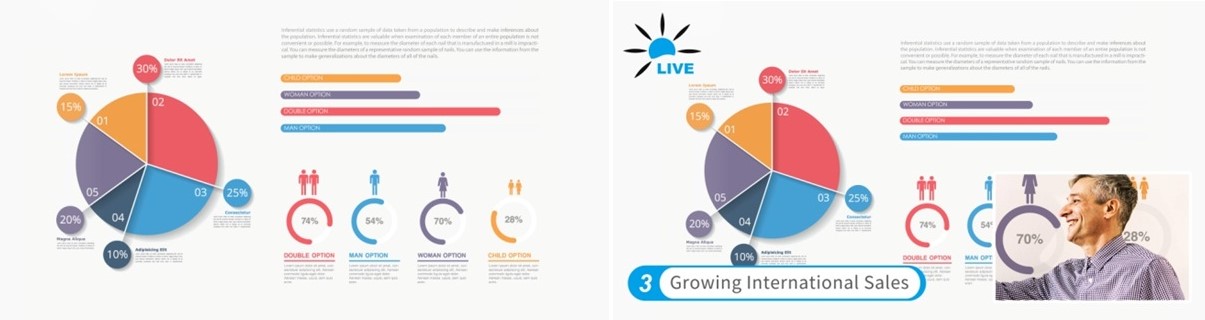 Before and After: A normal livestream of a lecture (left) without overlays simply shows your slides, versus one with overlays (right) that can be easily added with the ATEN UC9020 to add picture in picture, titles, and more.
