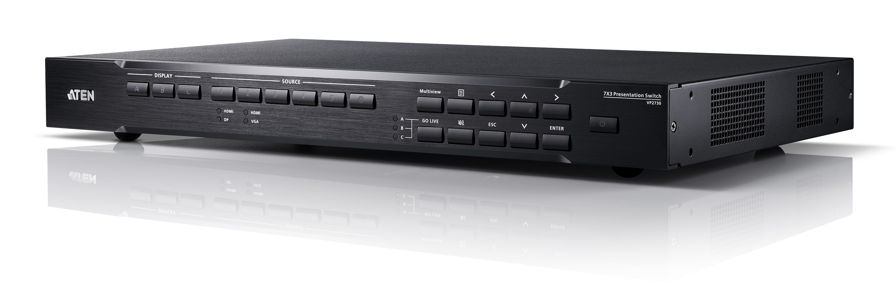 As the first member of the VP2000 Collaborative Series, the VP2730 is a multi-in-one presentation switch with seven multi-format inputs to two HDMI and one HDBaseT high-definition outputs that enable users to collaborate within a local meeting room or share presentations to multiple offices remotely to satisfy a wide variety of meeting space demands in meeting rooms, video conferencing rooms, lecture halls, distance learning classrooms, or other presentation environments. This collaborative presentation solution facilitates distance-free content sharing along with advanced audio, simplifying AV integration via eliminating the need for numerous individual components and the compatibility challenges that accompany them. The key features include: