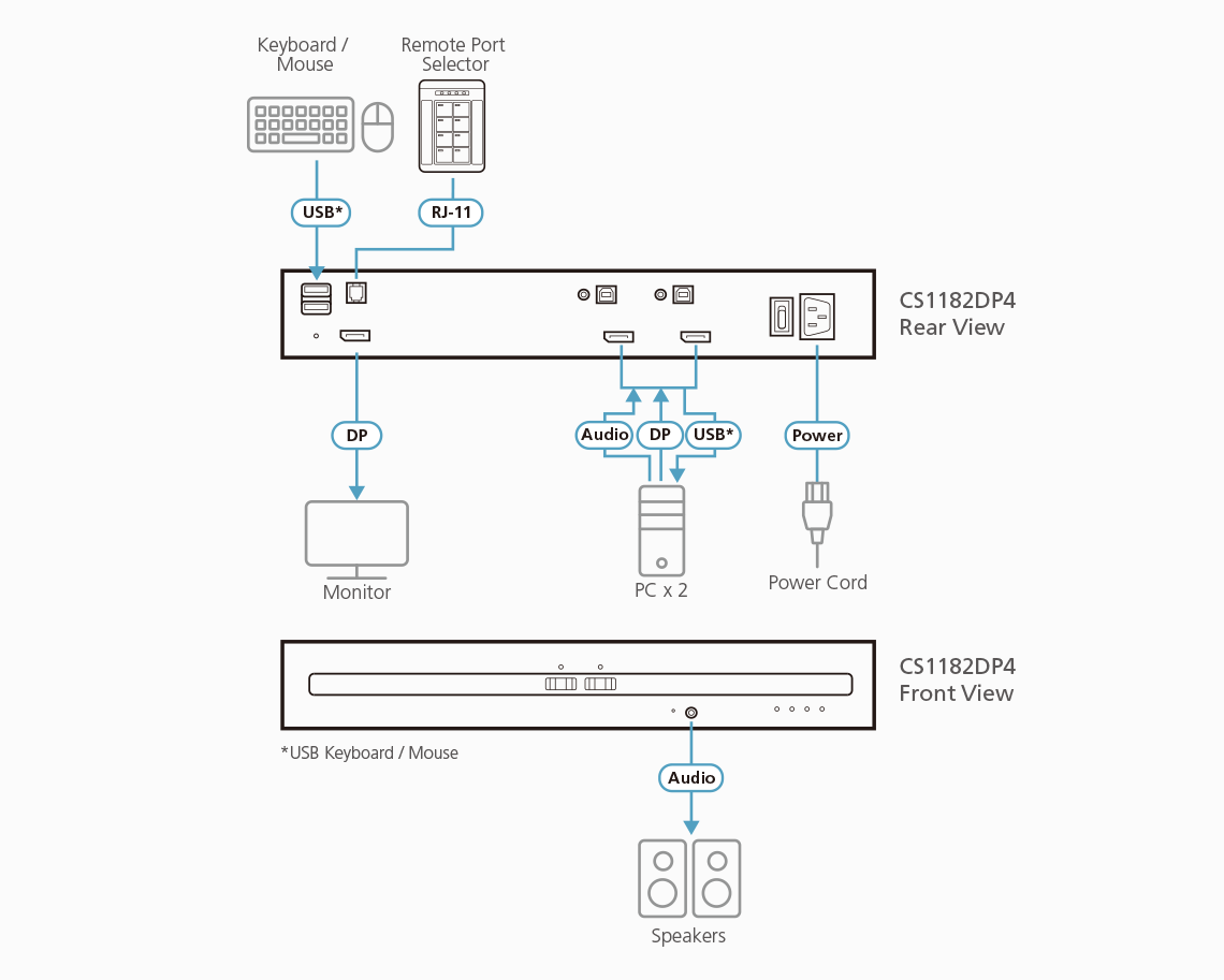 - 1x CS1182DP4 2-Port USB DisplayPort Secure KVM Switch