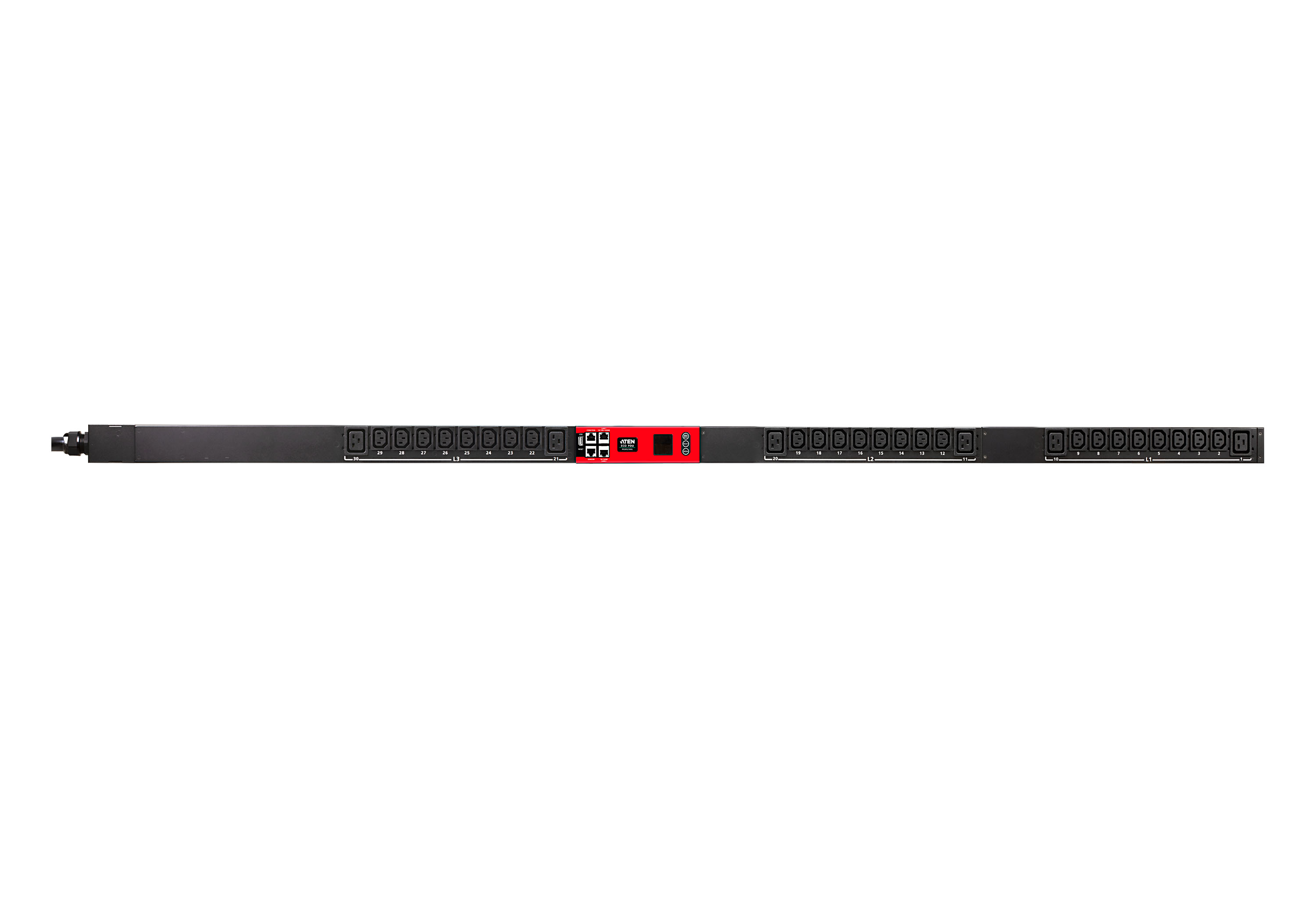 ATEN PG95230 3-Phase Metered eco PDU series contains 6 x IEC 60320 C19 and 24 x IEC 60320 C13 outlets in a 0U rack enclosure. With an ARM Cortex-A8 processor, the PG95230 series delivers flexible control methods through its LAN / COM / USB / environment sensor ports as well as powers up all connected equipment in less than 10 seconds once plugged in. For cost-saving and space-efficient setup purposes, the PG PDUs can be cascaded to connect up to 64 PDU units. As a result, these PDUs accommodate the increasing demand for power to high-density IT devices in server rooms and data centers.
